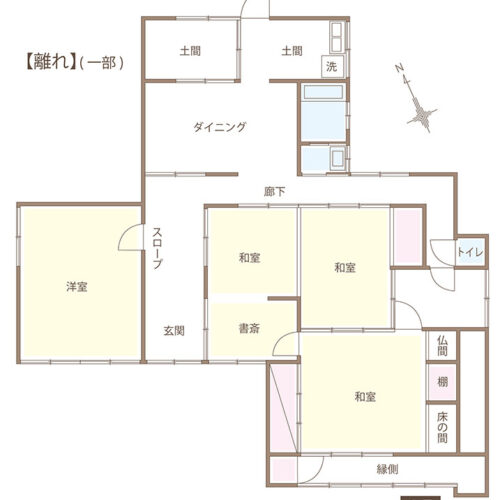 間取り 7LDK(母屋)、5D+土間(離れ) 構造