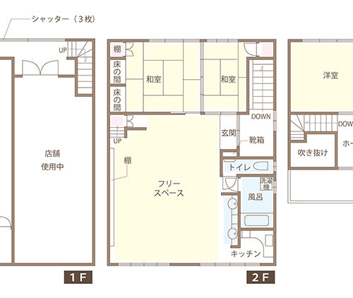 1階に店舗スペースが2区画あり、2・3階は事務所兼店舗など、選択肢のあるスペースになっています。