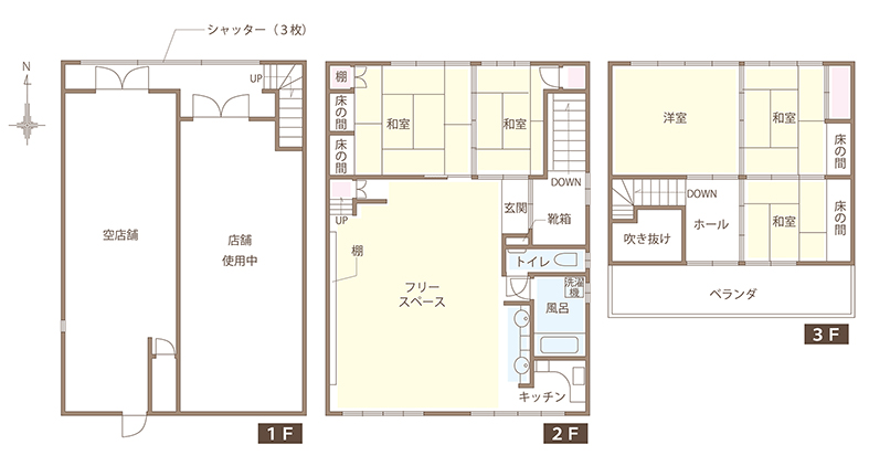 | 間取り | 5DK+F+2店舗 | 構造 | 3階建て(事業用ビル) |