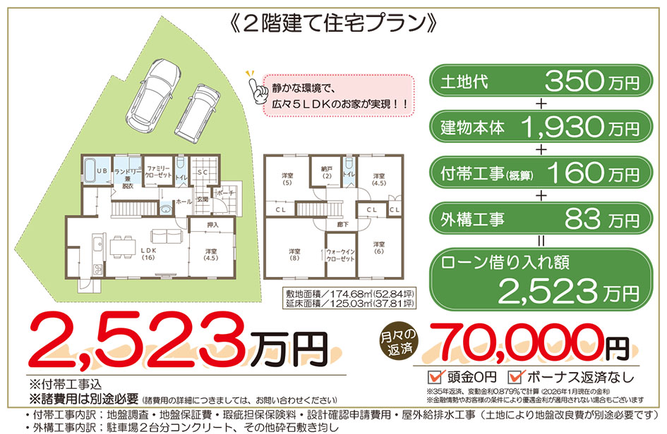 | 坪単価 | 約6.62万円/坪 | 土地面積 | 174.68m² (52.84坪) |